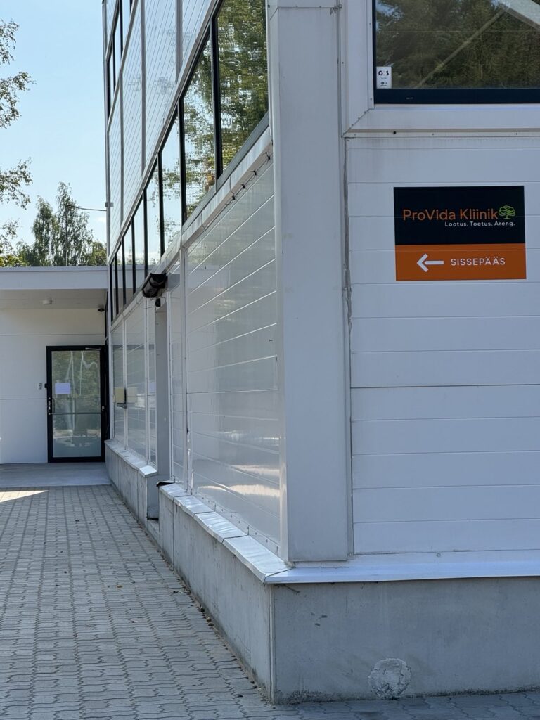 Kohale jõudes liikuge suurest peauksest edasi ja pöörake paremale. Meie sissepääs asub maja küljeuksel, kesklinna poolses osas. Praegu on üles pandud ajutised sildid, mis juhatavad Teid kenasti kohale.